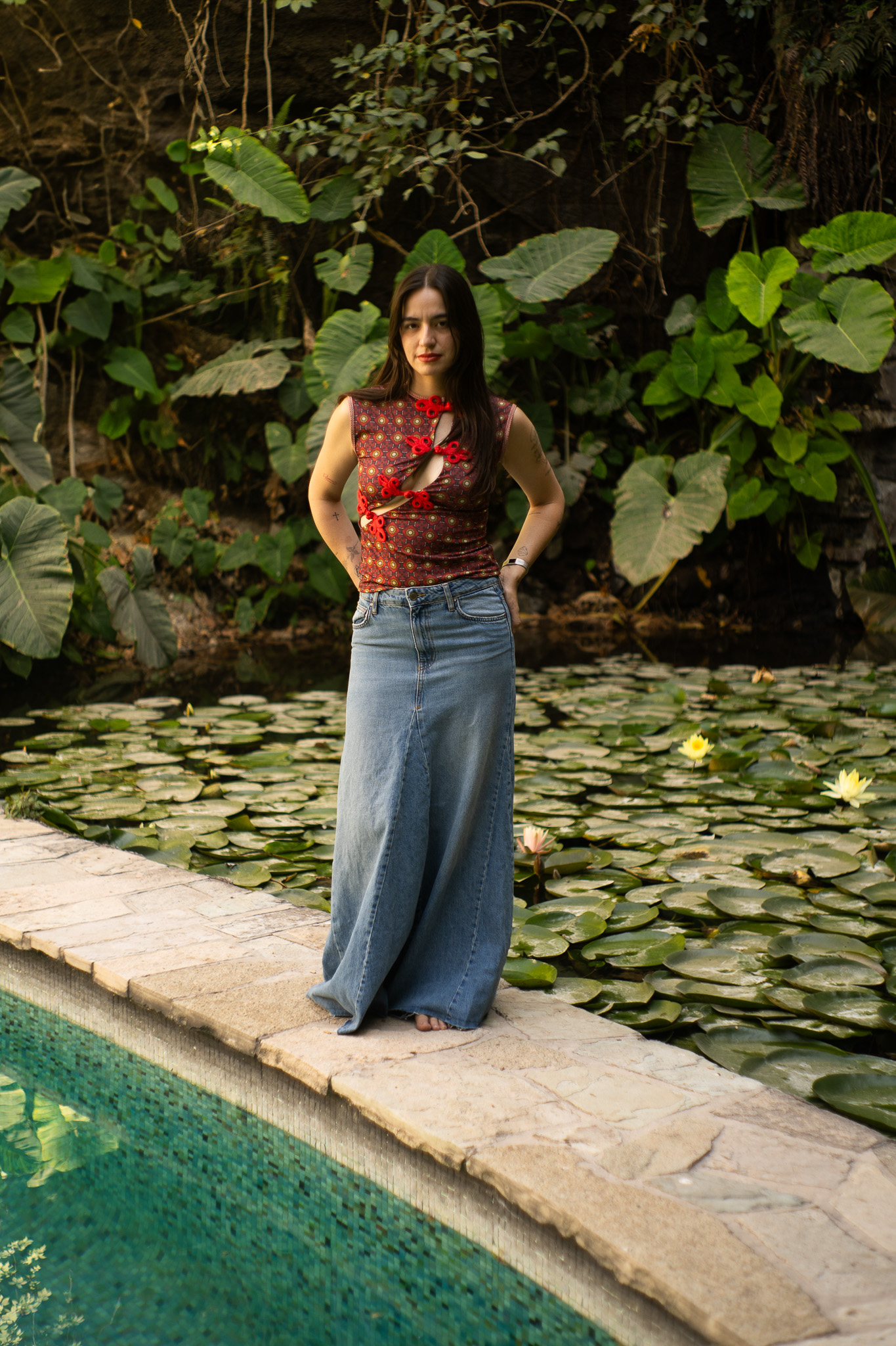 • Top manga corta con detalle de botones de rana.   Todos los diseños bordados son únicos, nunca verás uno igual.